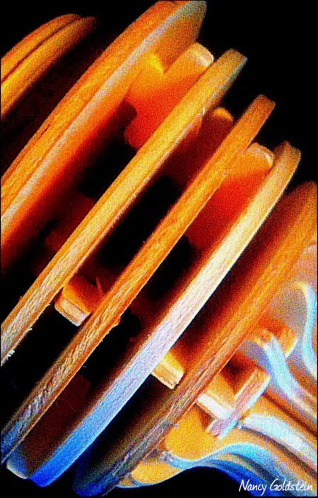 I was taking an evening Photoshop class at the TCC Visual Art Center in Olde Towne, Portsmouth, Virginia. I looked down High Street on the way back to my car. It had been raining, and the reflections caught my eye, so I whipped out my phone and grabbed a few shots. There wasn’t much color, but the lighting was perfect for black and white.